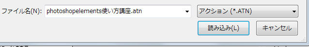 ダウンロードした、「photoshopelements使い方講座.atn 」を、読み込みます。